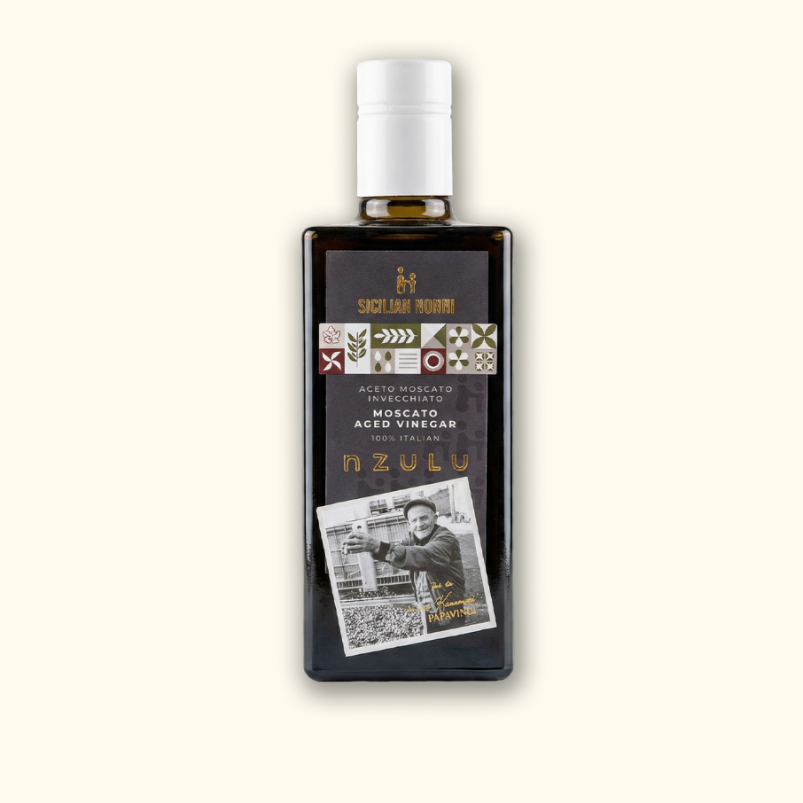Il nostro Moscato Aged Vinegar è un tributo alla biodiversità della Sicilia. Ottenuto da un sapiente blend di tre varietà d’uva storiche — Catarratto, Inzolia e Moscatello — questo aceto non è un semplice condimento, ma un ingrediente nobile.